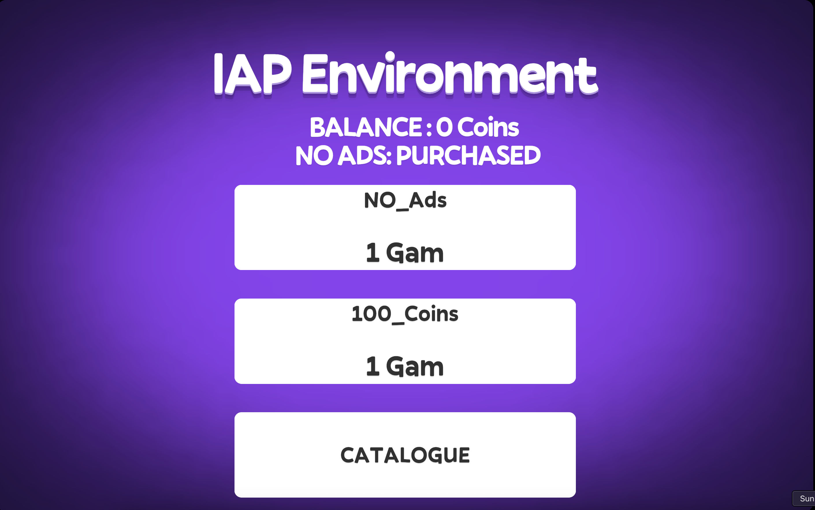 This guide provides a clear, step-by-step walkthrough for integrating in-game purchases (also known as in-app purchases or IAP) into your web game using the Playgama SDK. While this guide uses Unity as the example engine, the Playgama SDK is designed to work seamlessly with other engines and JavaScript frameworks. Once integrated, your IAP will function across any supported portal, including [Playgama.com](https://playgama.com/).&#x20;