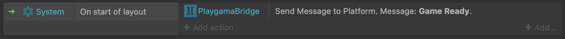 Send predefined messages to the platform to trigger specific actions or events, such as signaling that the game is ready.