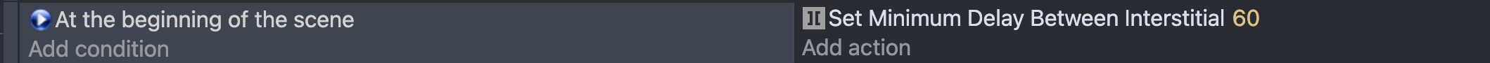 Set the minimum time interval between interstitial ad displays to comply with platform requirements and improve user experience. Default value is 60 seconds.&#x20;