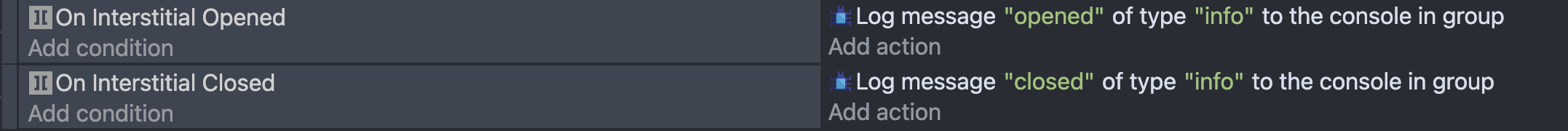 Display an interstitial ad at appropriate moments, such as during level transitions or game over screens. Parameters: